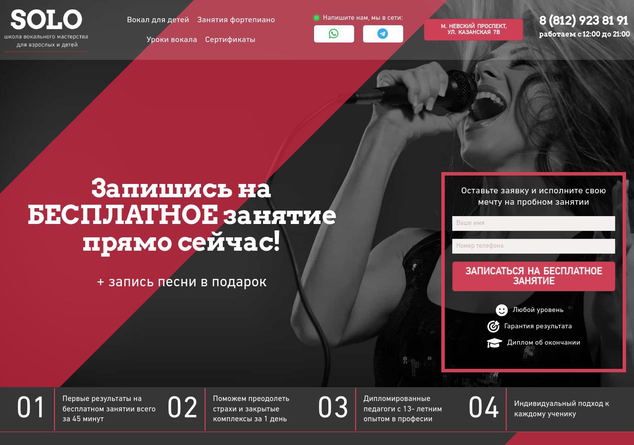 Профессиональное обучение вокалу для новичков и профессионалов в школе SOLO